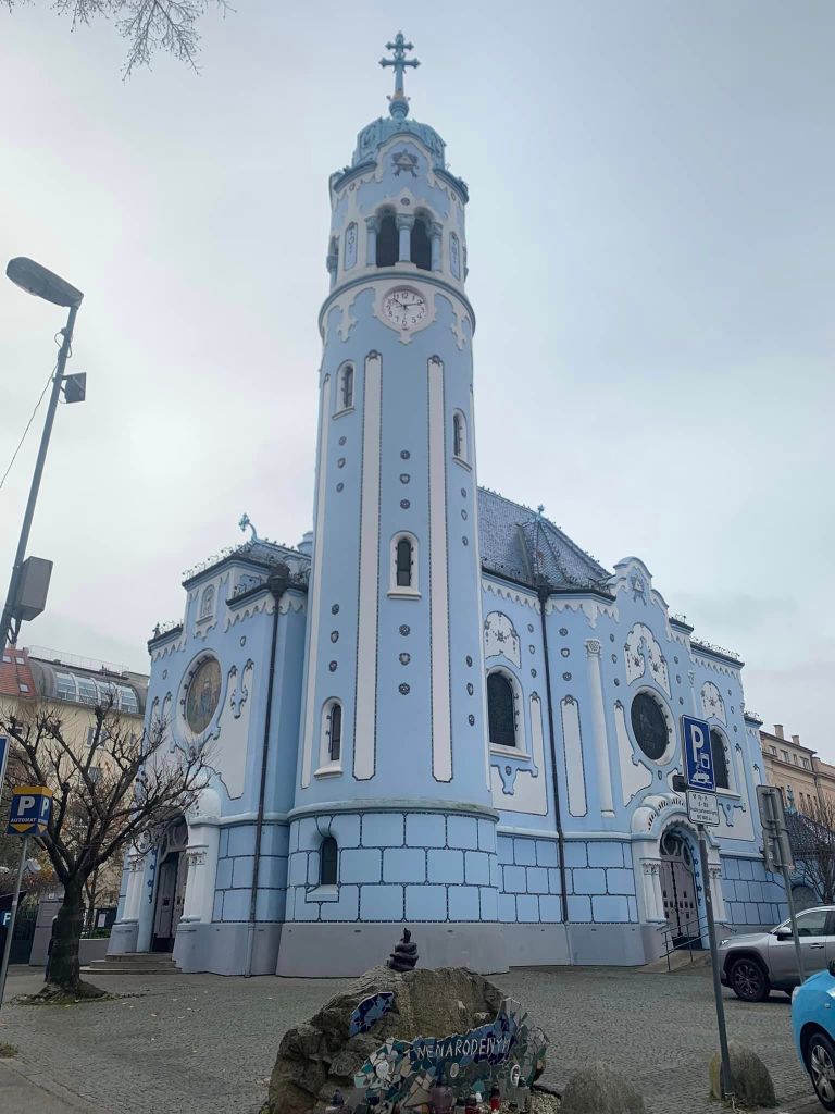 Esta particular iglesia es quizás una de las cosas que ver en Bratislava que más me llamó la atención. Es una iglesia pequeña de color azul que fue construida entre 1909 y 1913 y llama mucho la atención no solo por su particular color exterior, sino por su bonito diseño que en cierta forma me hace recordar al famoso arquitecto de Cataluña, Antoni Gaudí.